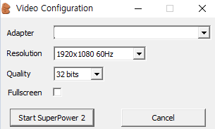해상도를 설정 후 StartSuperpower2를 클릭해 주세요.