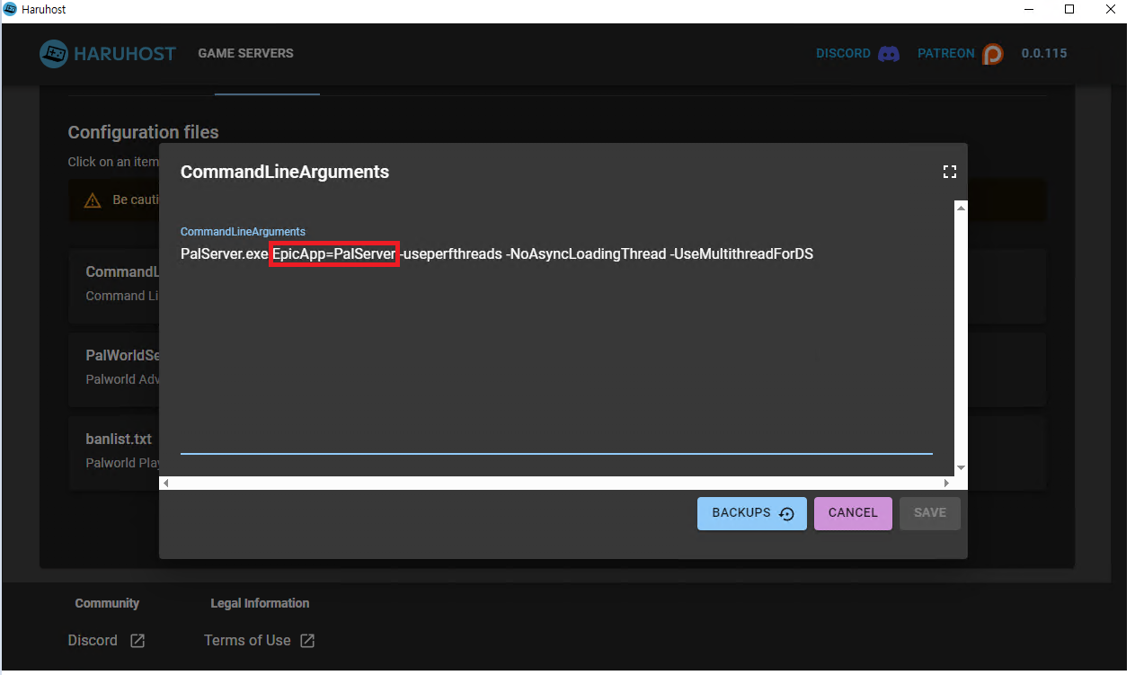 EpicApp=PalServer를 작성하면 서버리스트에 공개가 됩니다.